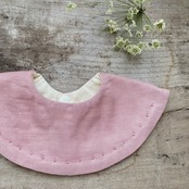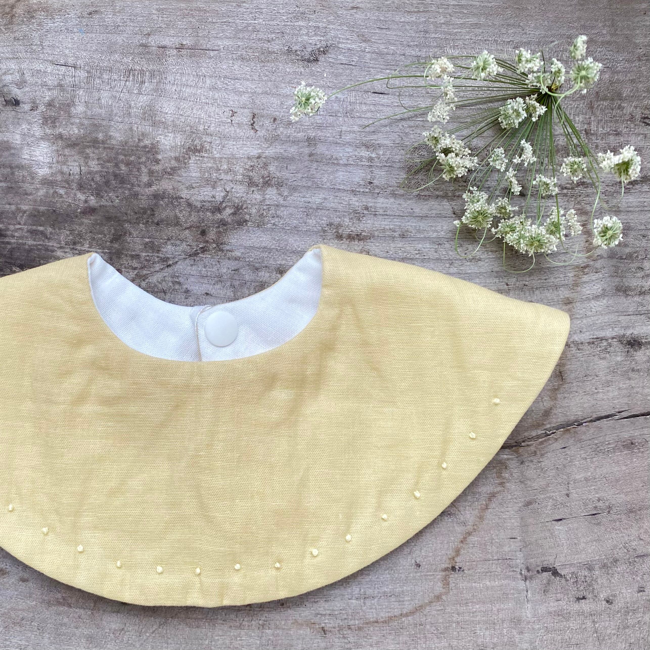繊細なドットの手刺繍が入ったバイカラーのサークル型ビブ。