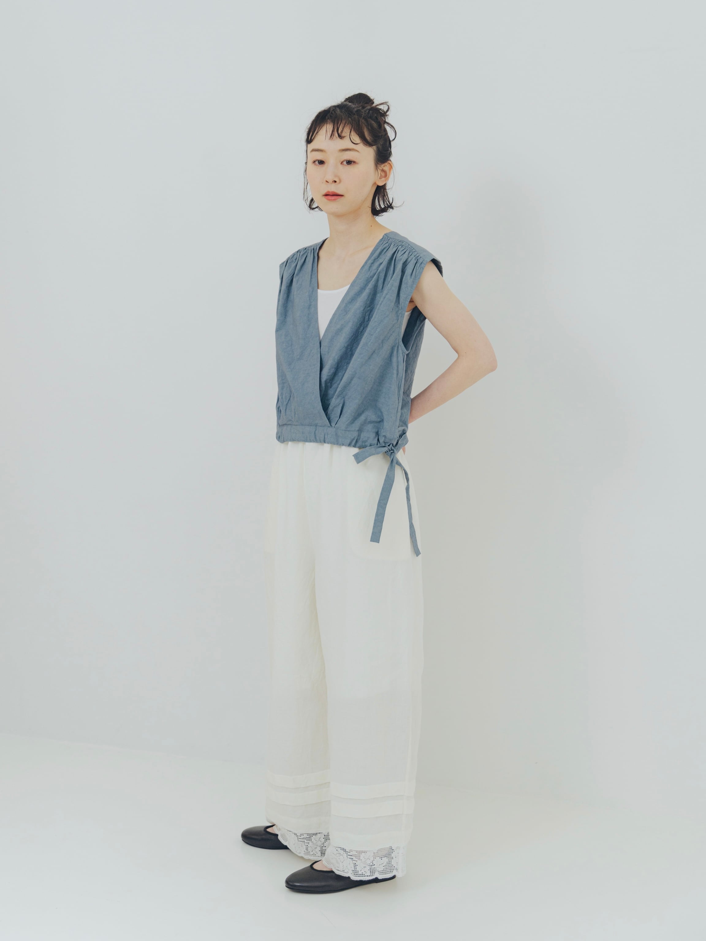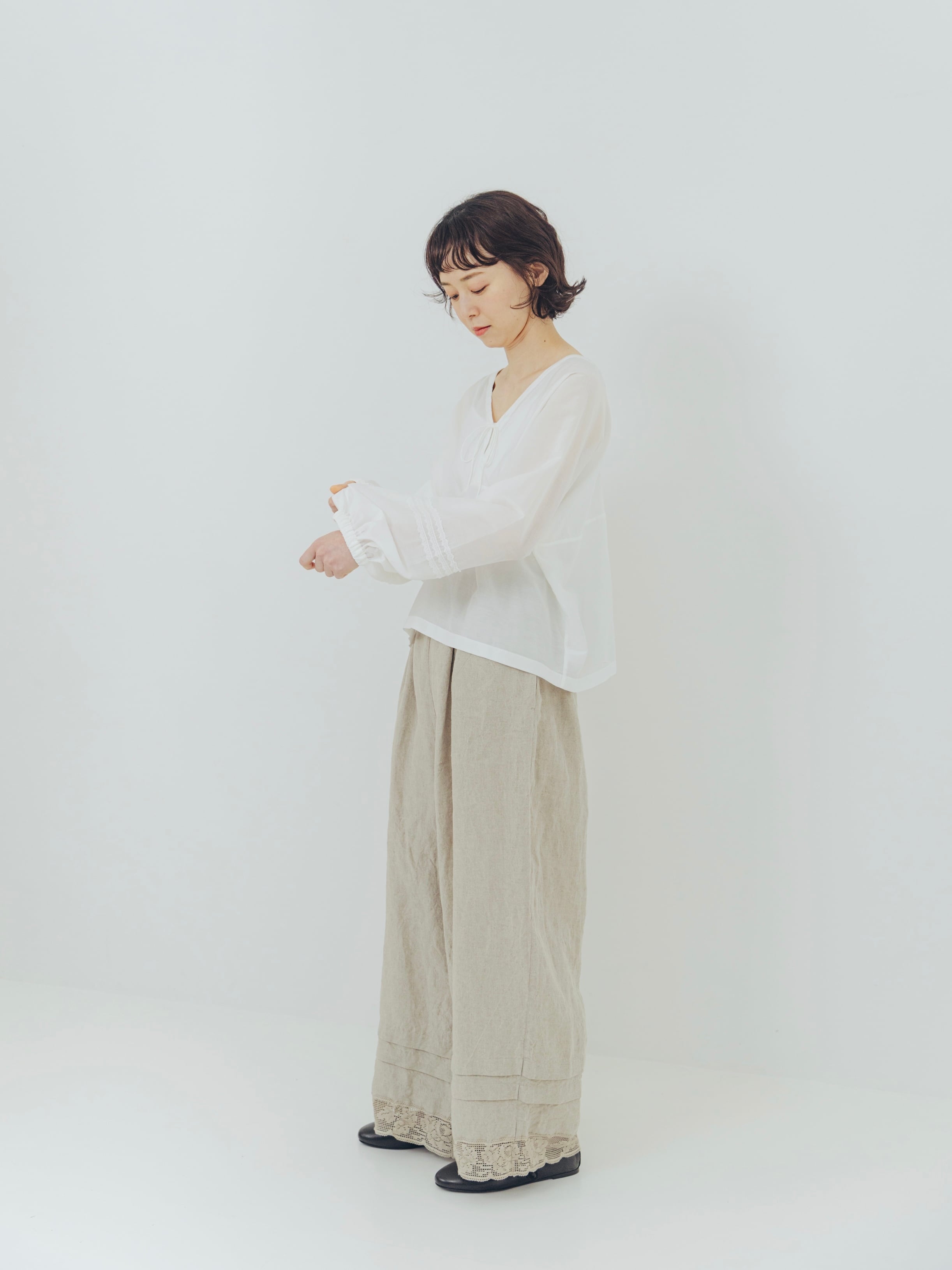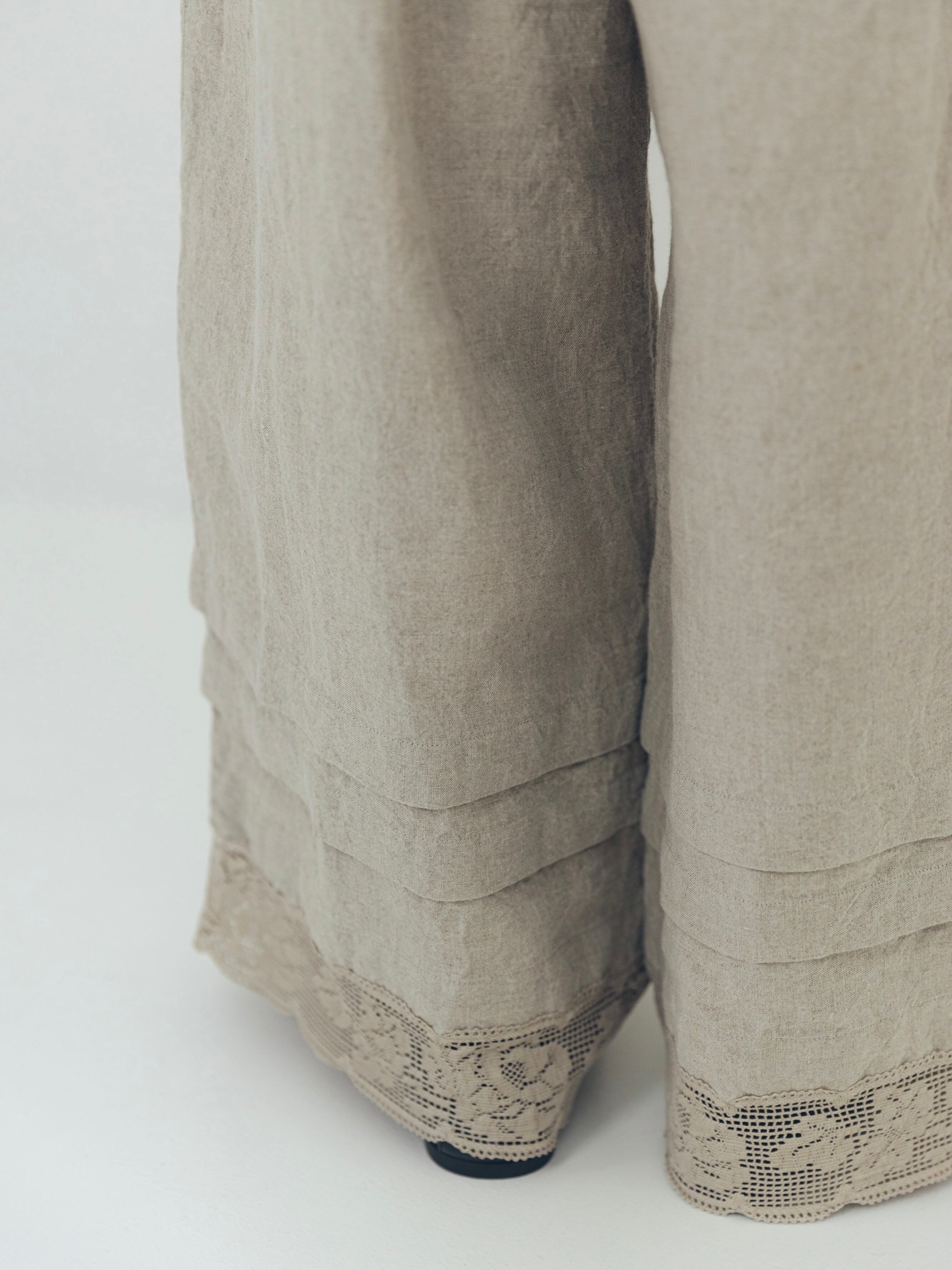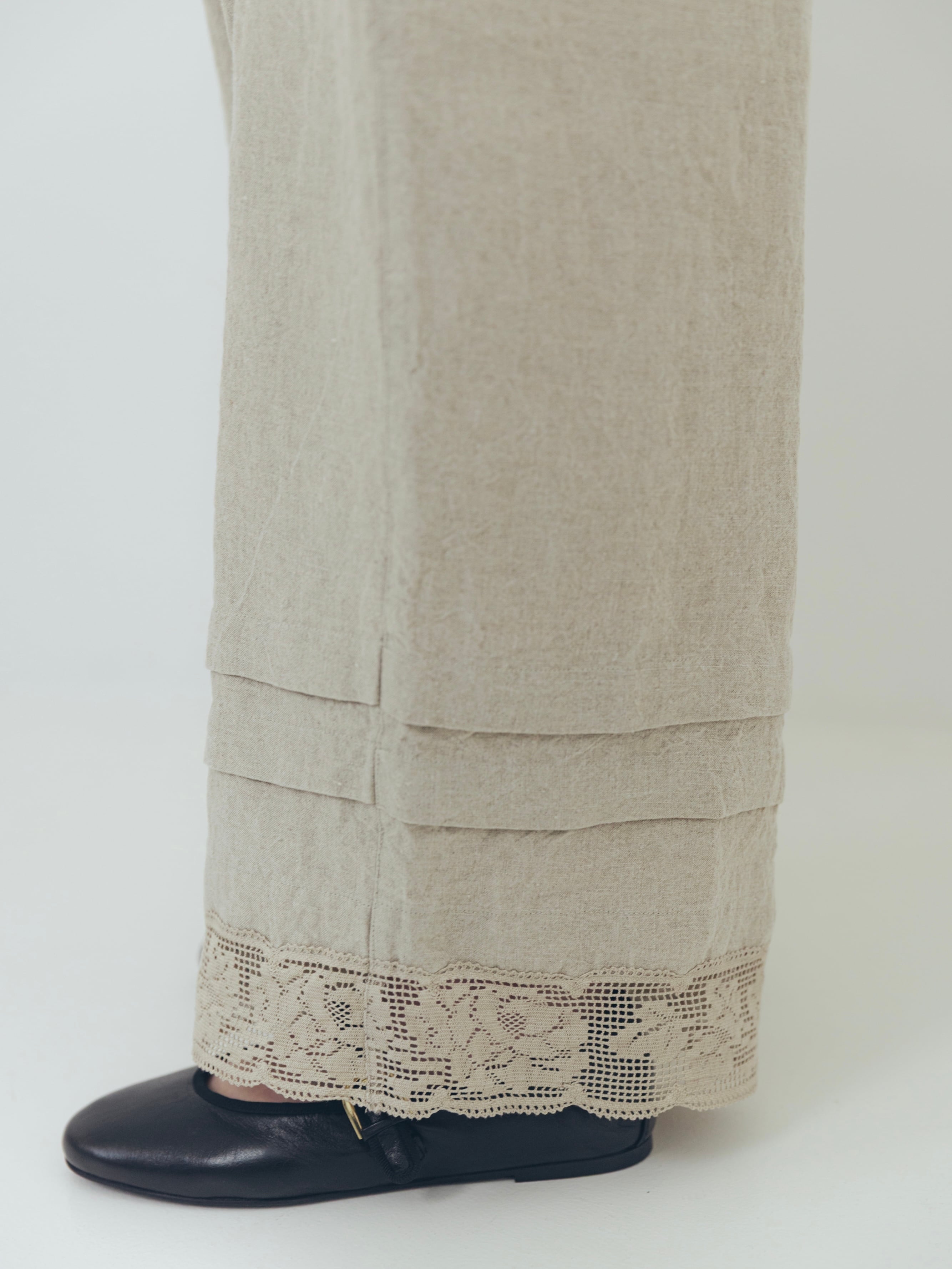予約商品 "Belgian Linen Tucks & Lace" wide easy pants (Woman)