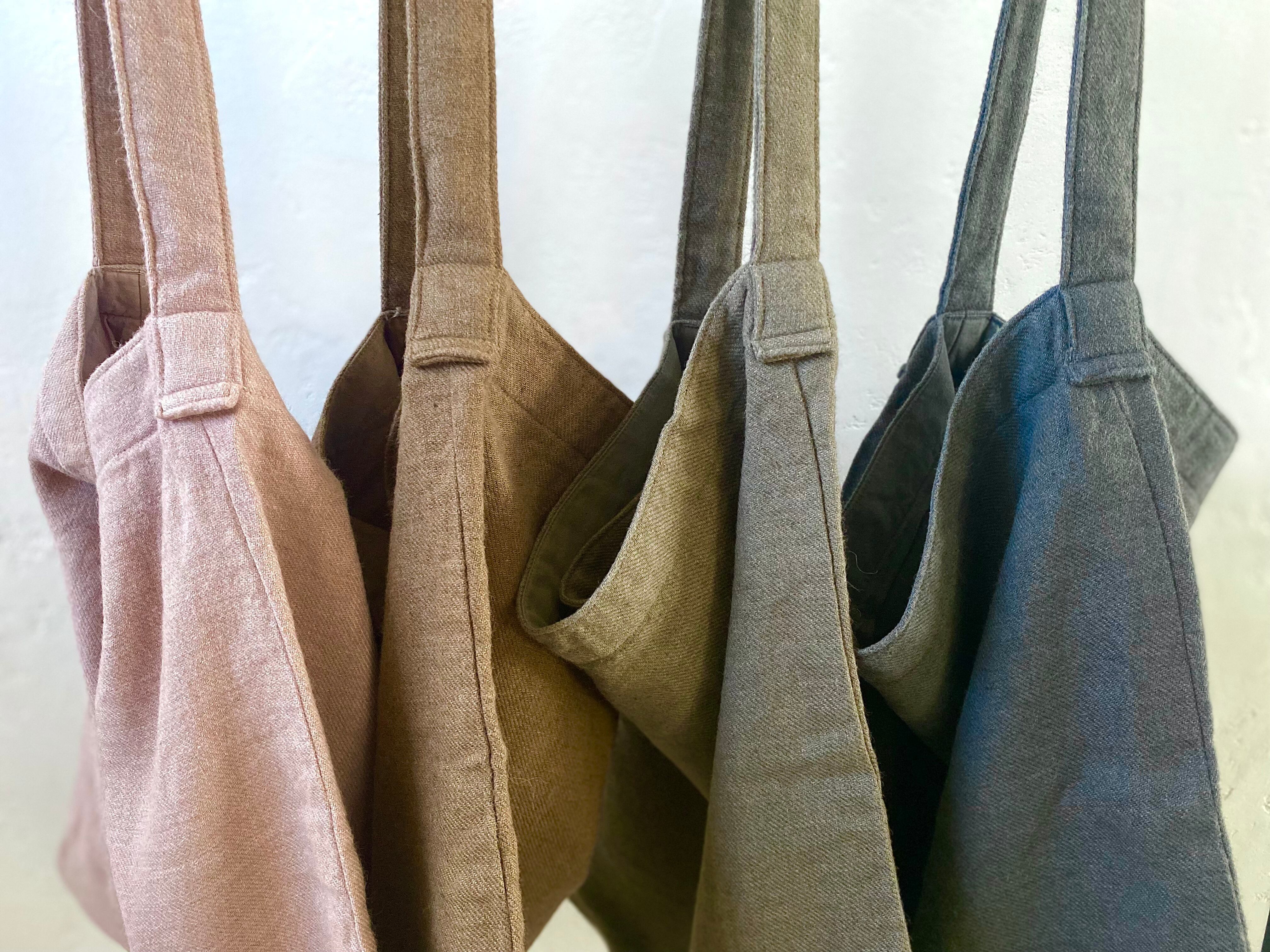 A4サイズのファイルも入る、シンプルなワンショルダーのトートバッグ。