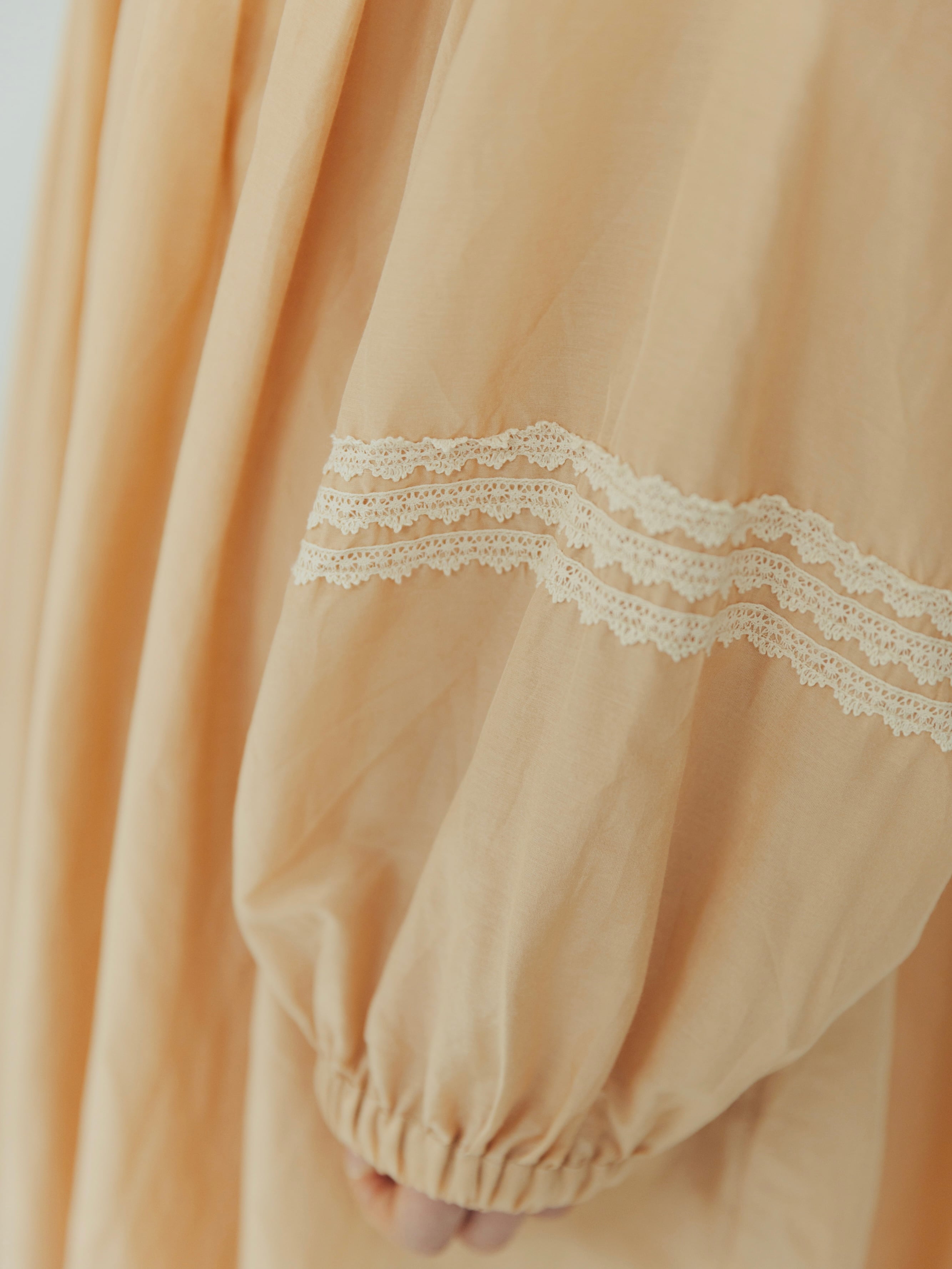 袖に繊細なレースをあしらいました。