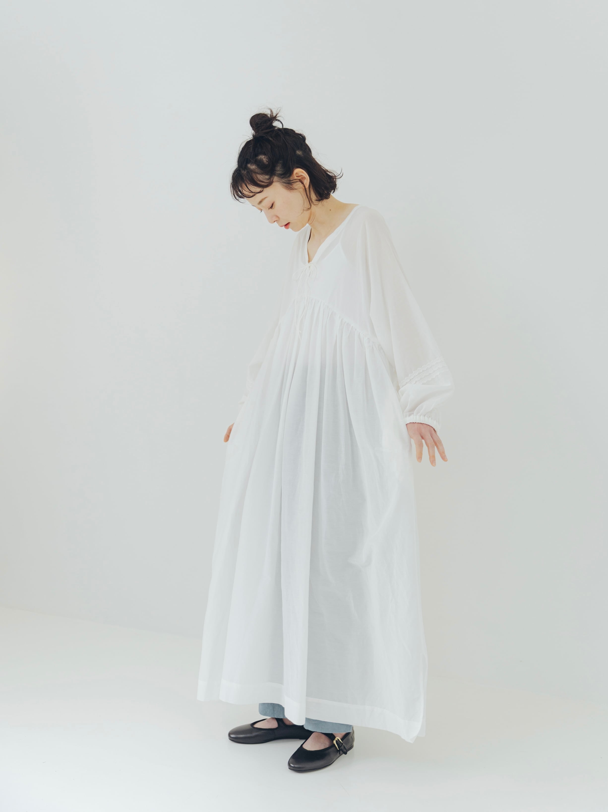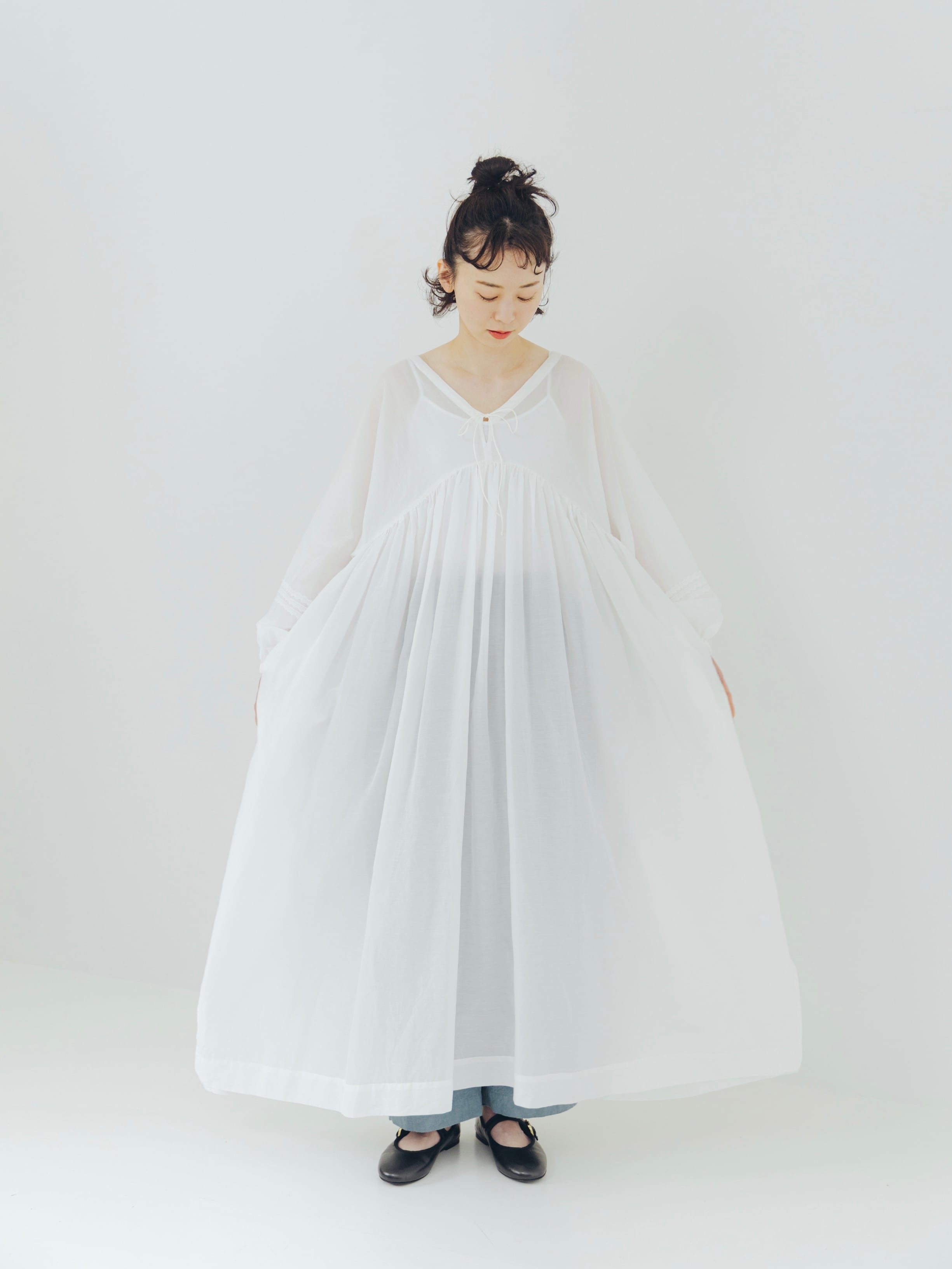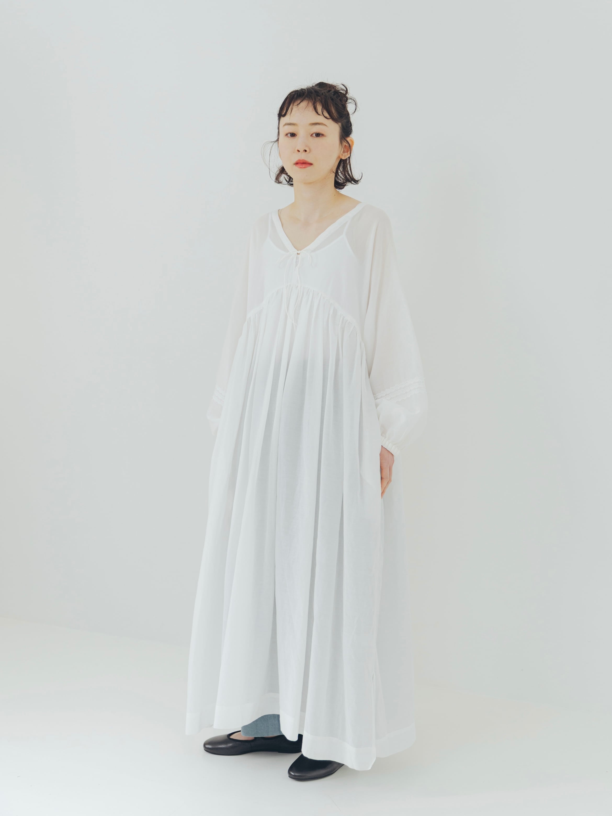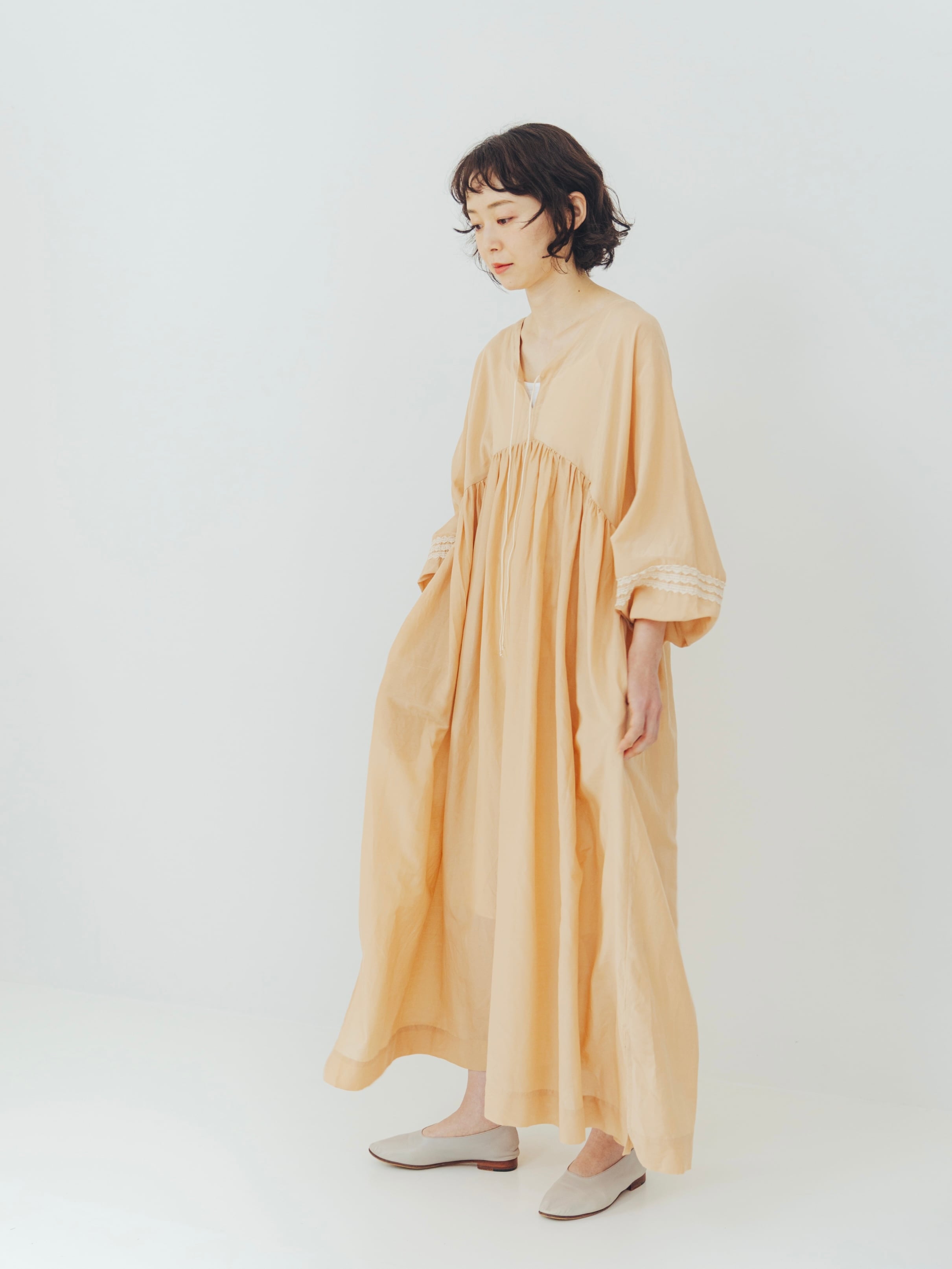 予約商品 "Cotton / Silk " gathered long dress(WOMAN)